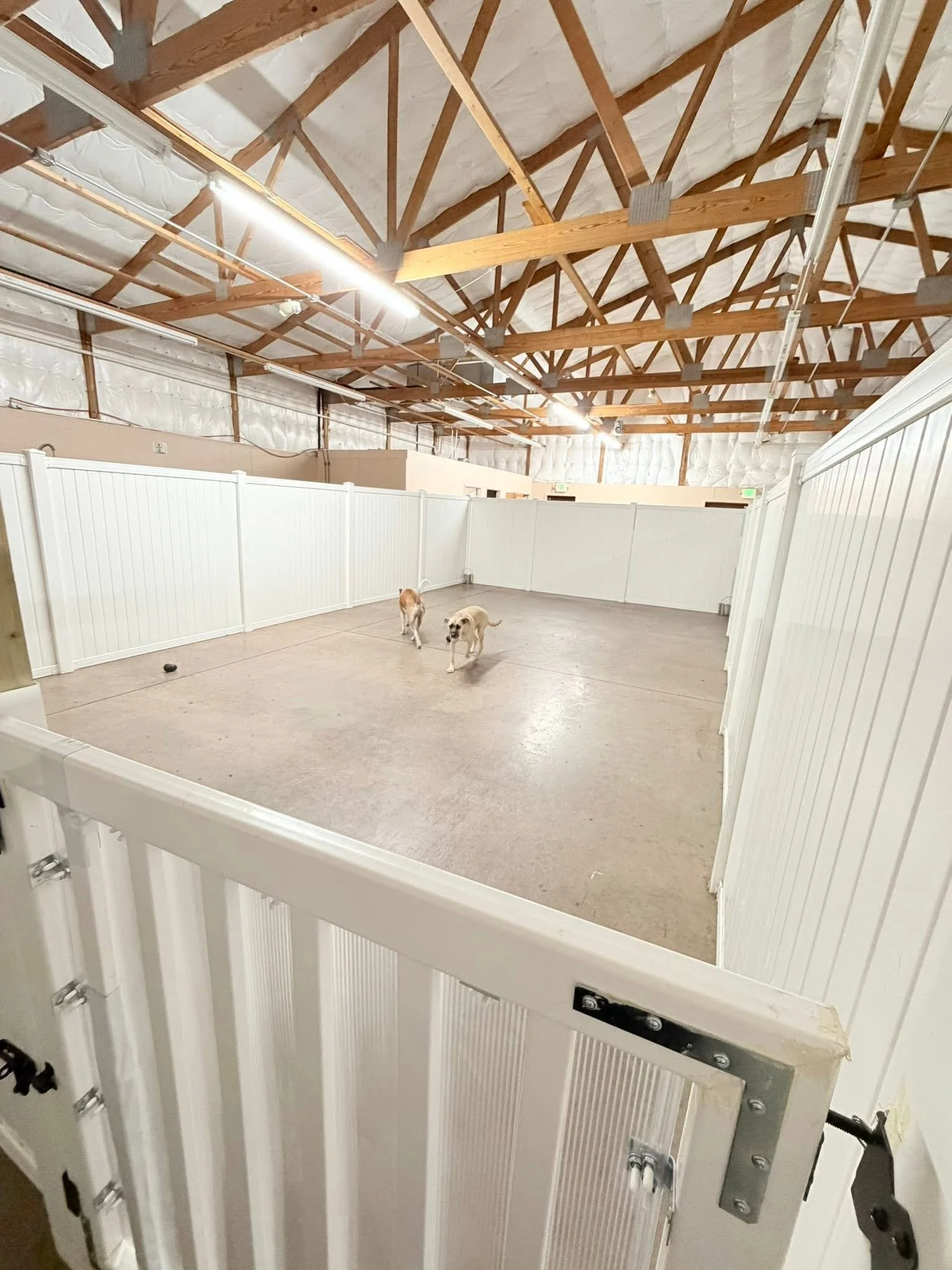 FOR THOSE PUPS THAT ARE LARGER THAN LIFE, WE PROVIDE THEM WITH A LARGE INDOOR PLAY YARD.